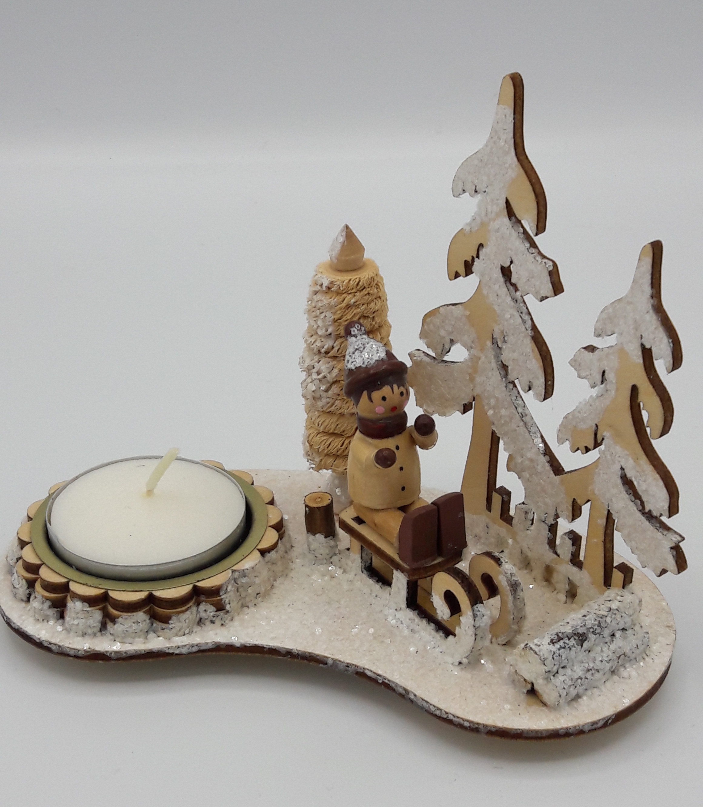 Neuer Teelichthalter als Winterlandschaft – Schlittenfahrt – Länge 14 cm = 8 €
