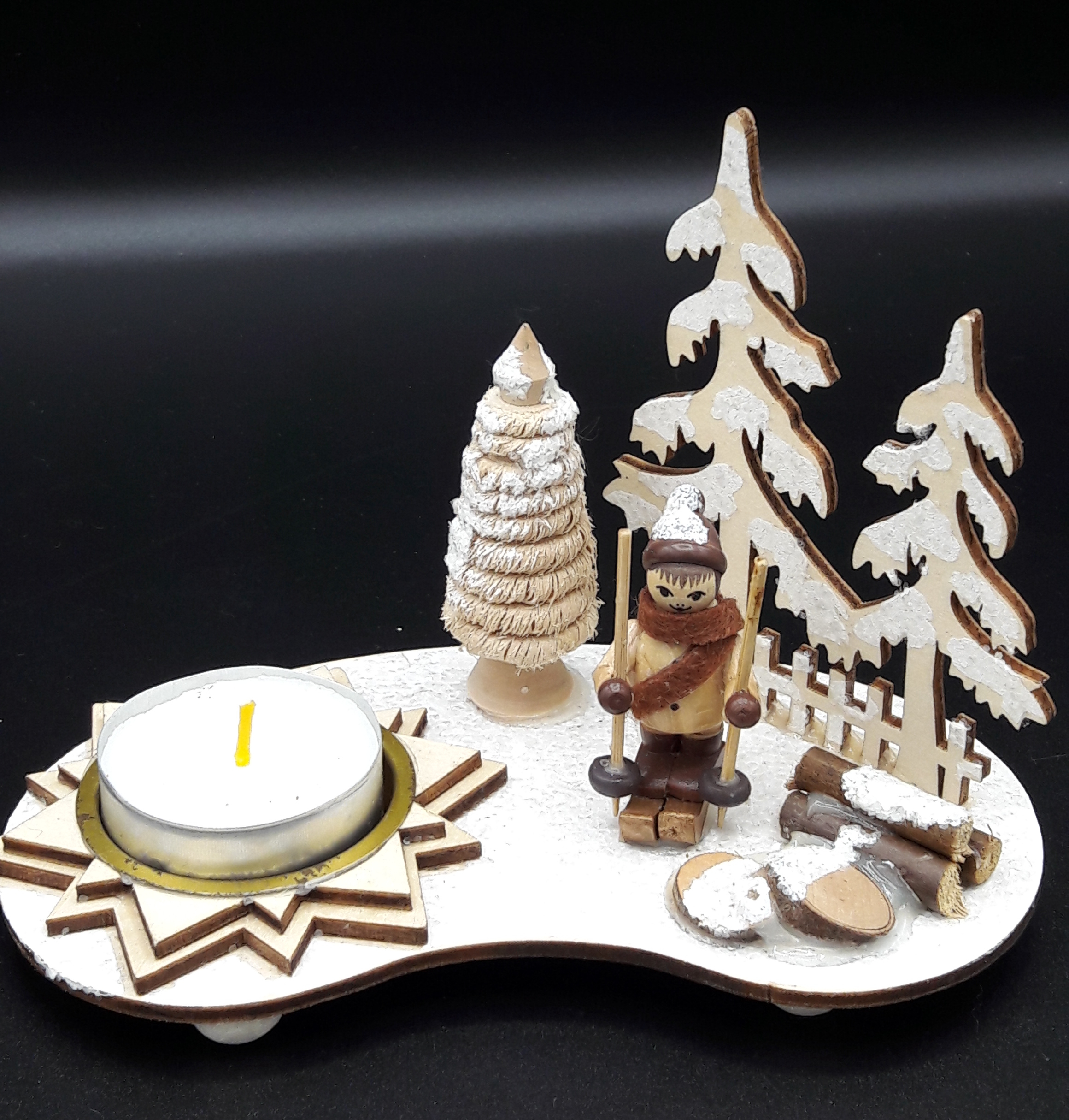 Neuer Teelichthalter als Winterlandschaft – Skifahrer – Länge 14 cm = 8 €