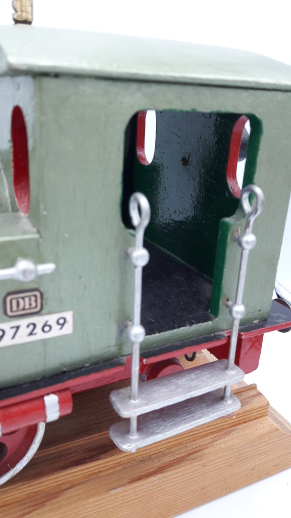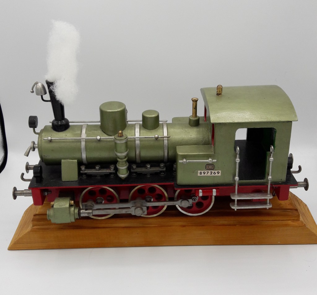 Schönes Schauobjekt – Holz-Dampflokomotive 35 cm auf einem Holzsockel = 30 €