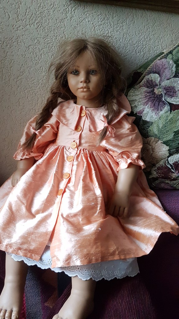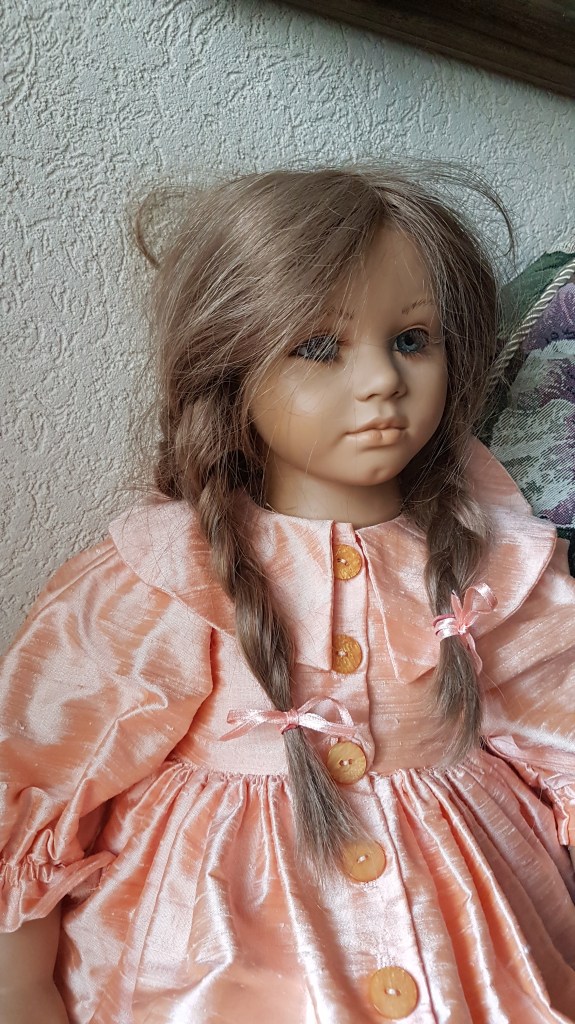 „Heidi Plusczok“ Porzellanpuppe von 1988 hergestellt in limitierter Auflage 101/93.Sie ist 62 cm groß, hat echtes Haar und ein hervorragend genähtes, hochqualitatives Kleid in sehr gepflegtem Zustand.