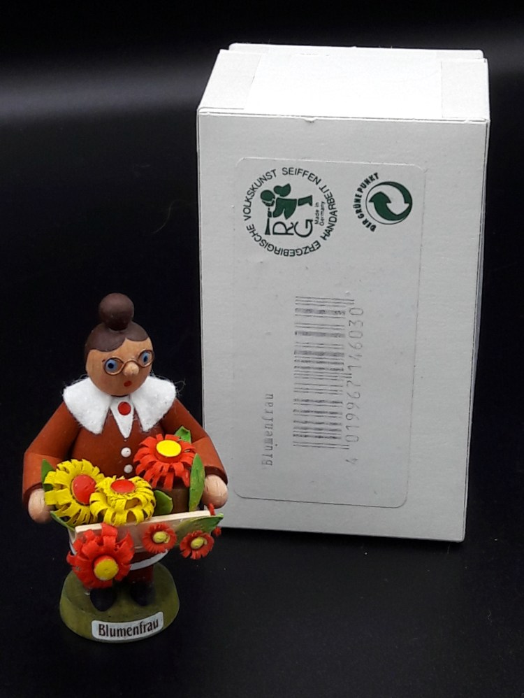 Echte Erzgebirgische Volkskunst – „Blumenfrau“ neu mit Originalkarton = 12 €