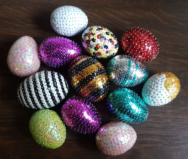 Pailletten-Eier – handgefertigt = Stck. 5 €