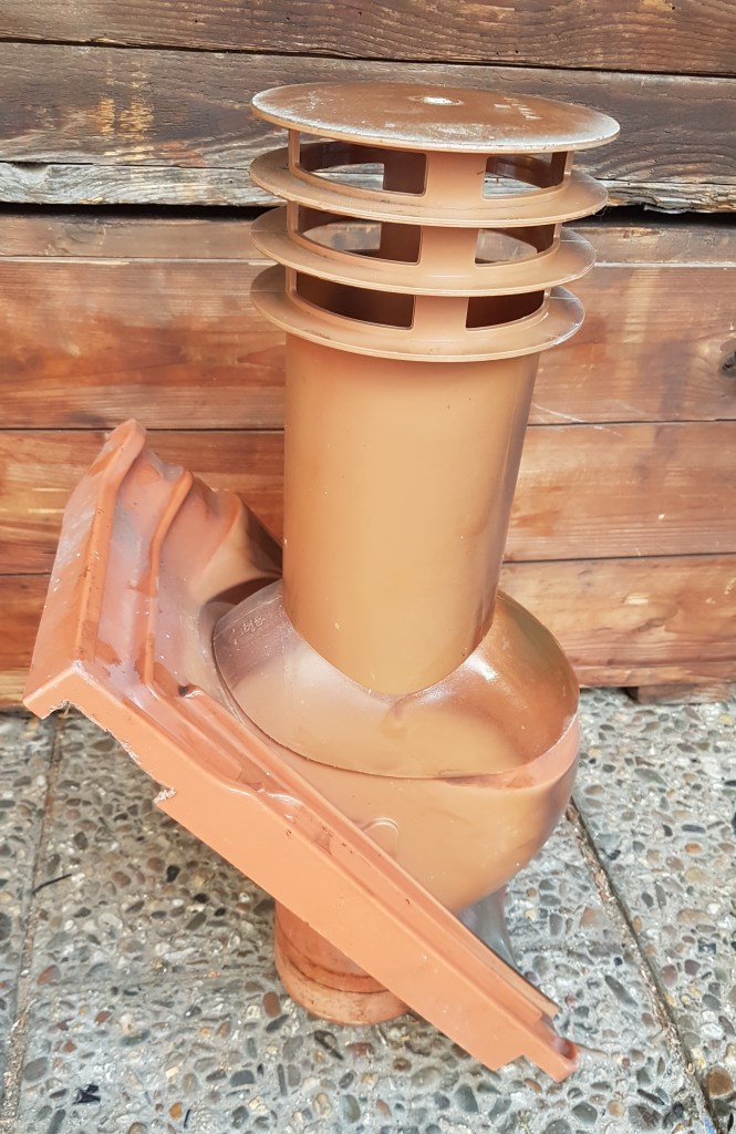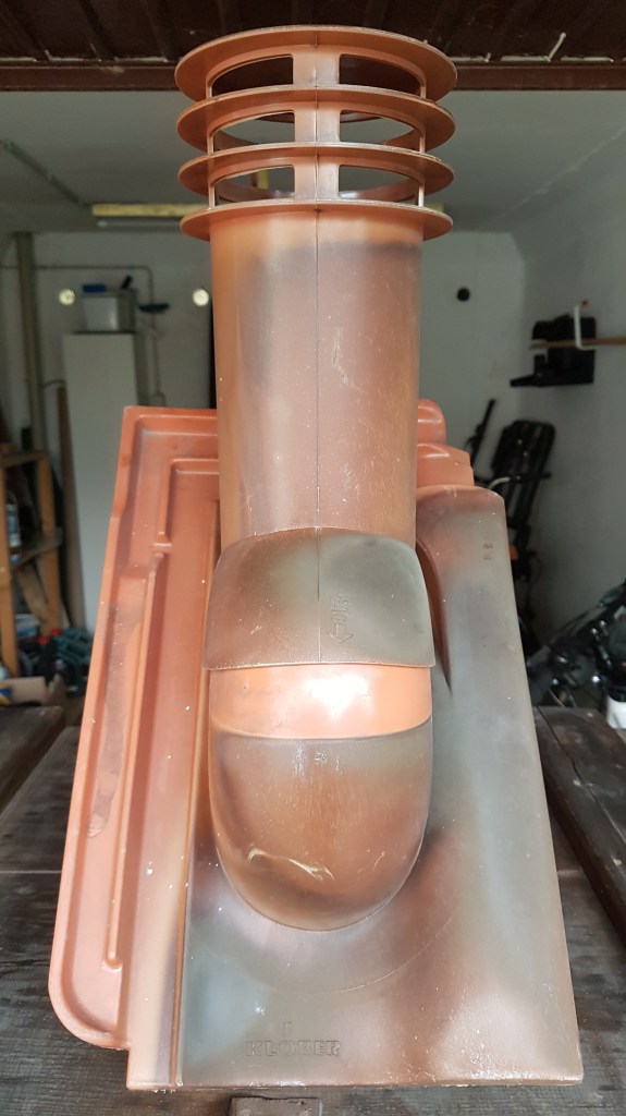 Inhalt der „Holzkiste 1“ = Dachpfanne mit Dunstabzug aus Kunststoff