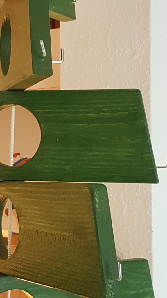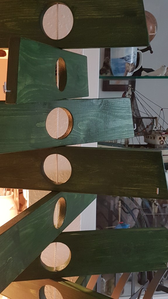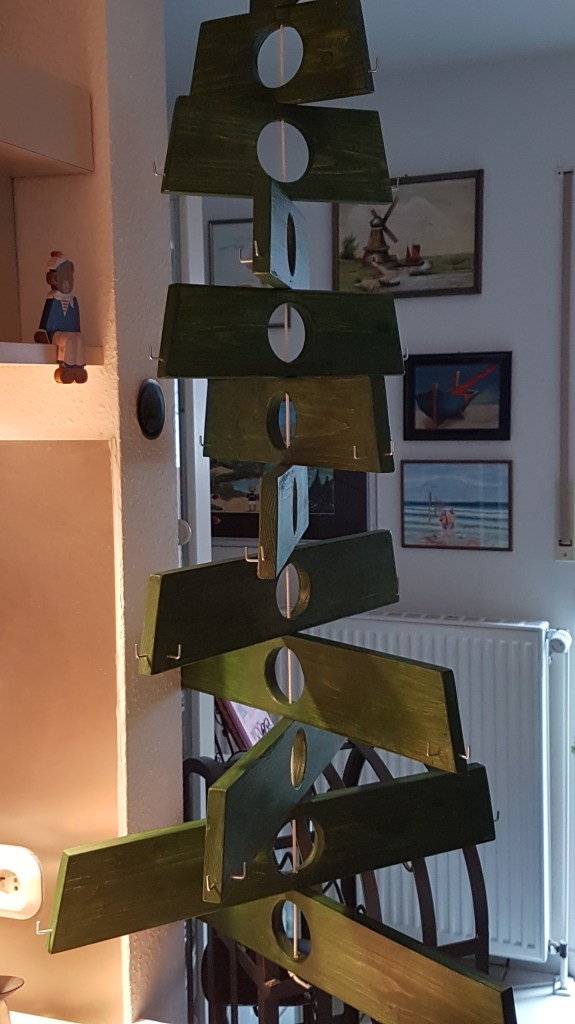 Als ich die Anhänger dann an den handgefertigten Weihnachtsbaum hängte, merkte ich, dass sie so ein außergewöhnliches Design hatten, dass der vorhandene nostalgisch glitzernde Christbaumschmuck gar nicht dazu passte.