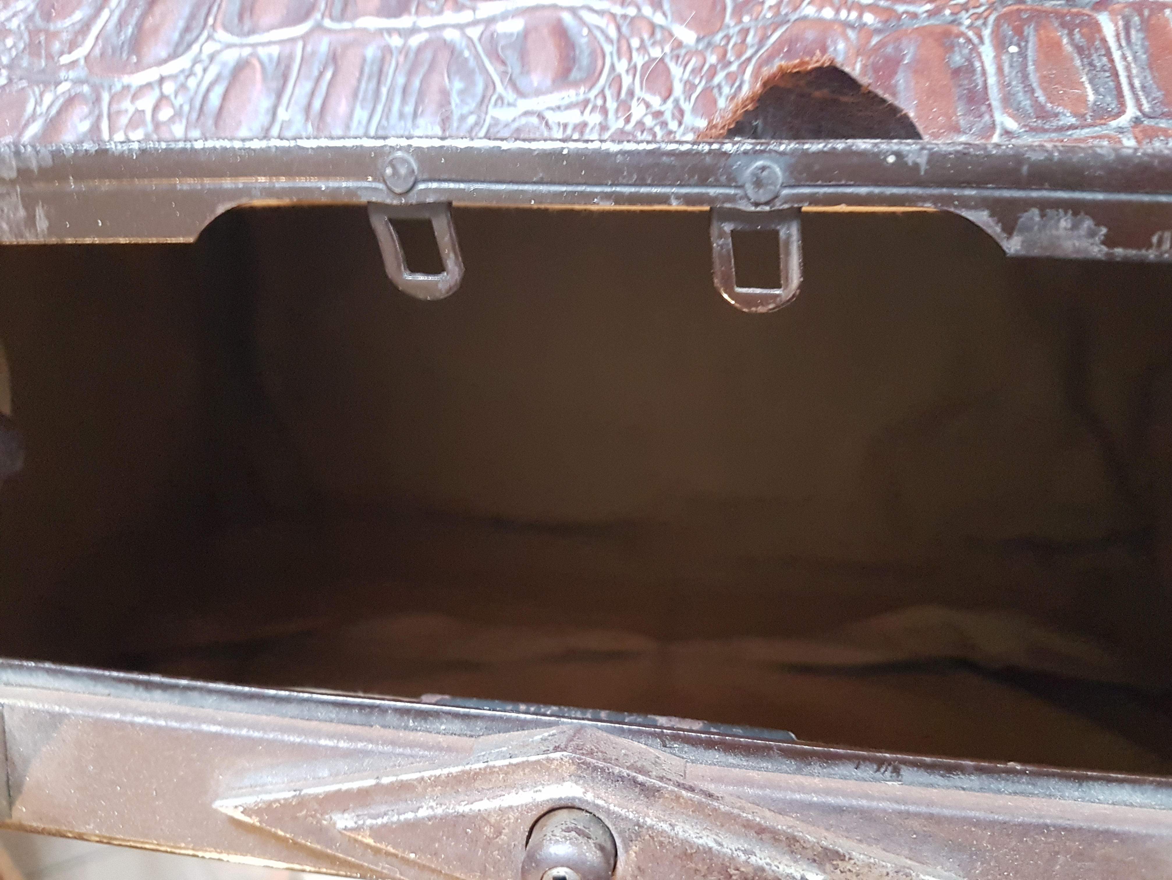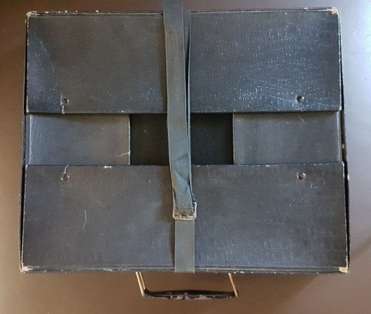 In der zweiten Holzkiste, mit der Unterteilung im Inneren befanden sich ein antiker Doktorkoffer, eine alte Hutschachtel und eine antike Schachtel mit einem Chapeau Claque.