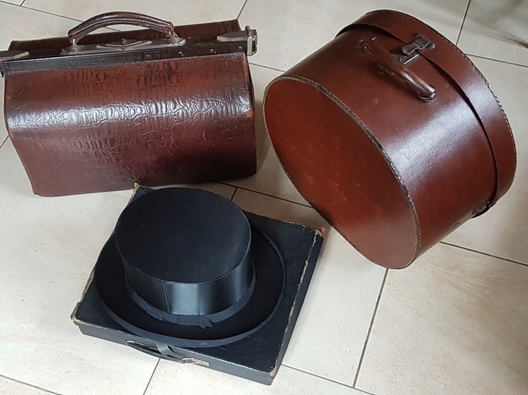 Antiker Arztkoffer, Hutschachtel und Chapeau Claque
