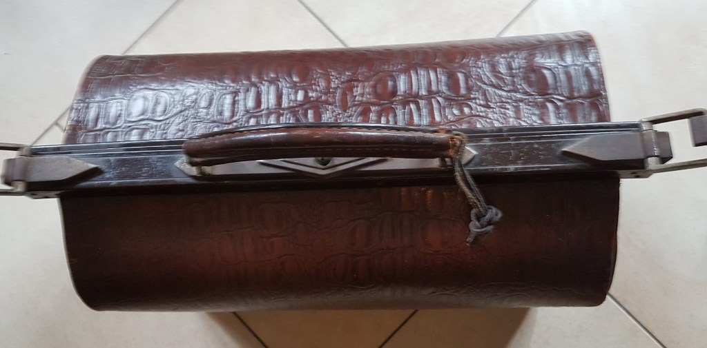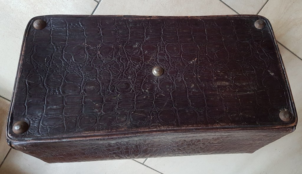 Der antike Arztkoffer ist aus Leder und hat altersentsprechende Gebrauchsspuren = 65 € (verkauft)