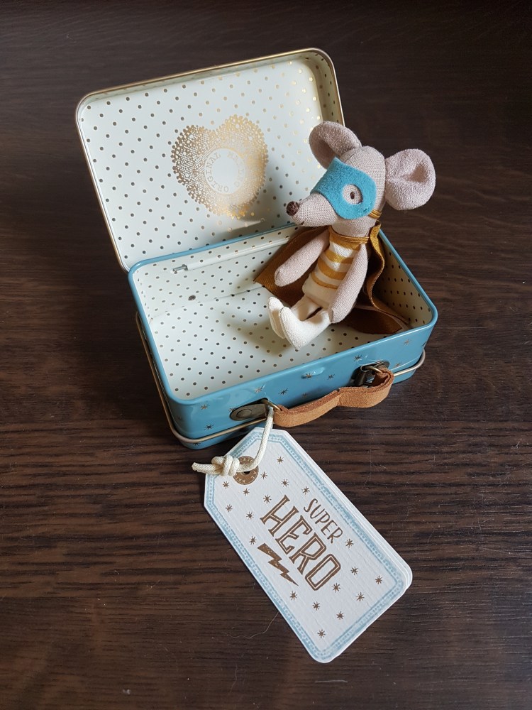 Im Internet machte ich mich über die Dänische Firma schlau. Schaute mir ihre Produkte an und beschloss mich mal auf der Suche, nach diesen wunderschönen dekorativen Dingen zu begeben. Dabei fing ich bei mir auf dem Dachboden an. Der Stil der Firma „Maileg“ kam mir doch sehr bekannt vor. Ich war fest davon überzeugt, dass sich irgendwo auf dem Dachboden noch solche Teile versteckten. Nach einer längeren Suche, fand ich das Objekt der Begierde. Eine alte geblümte Stoffschachtel gab die Sicht auf Stoffmäuse & Co frei.