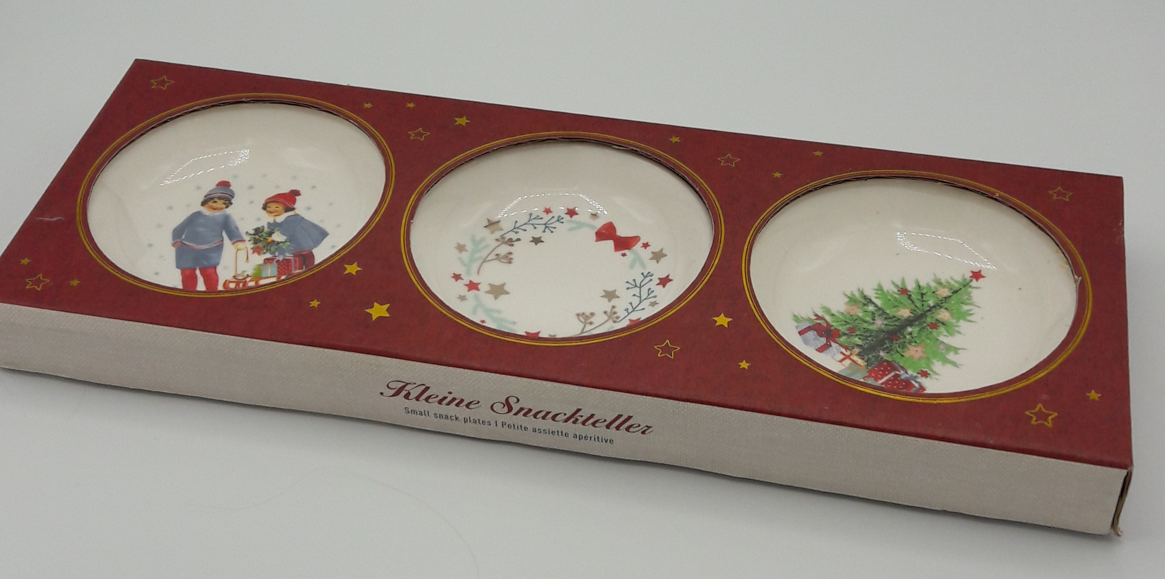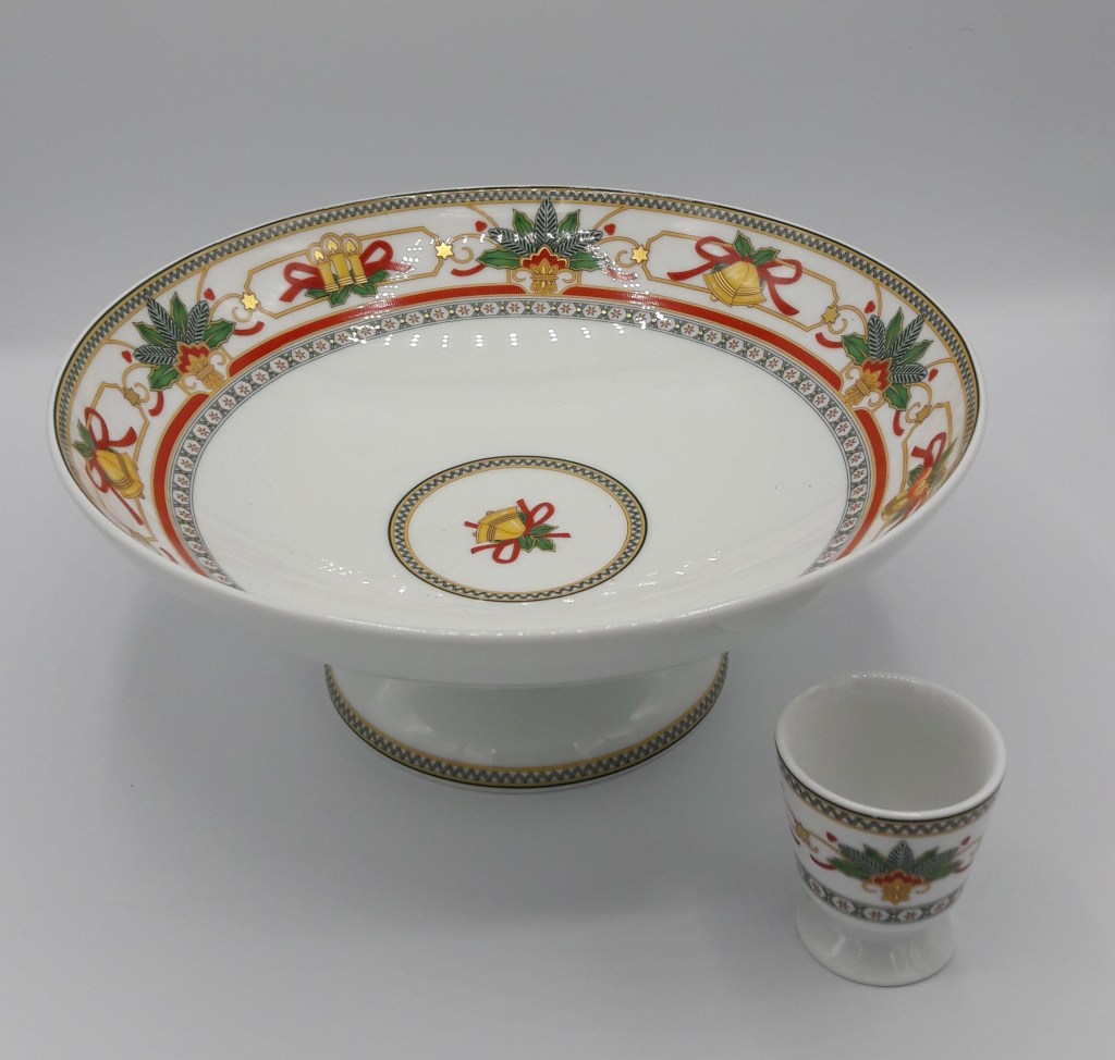 Schale und Eierbecher von „Hutschenreuther“ mit Weihnachtsmotiv